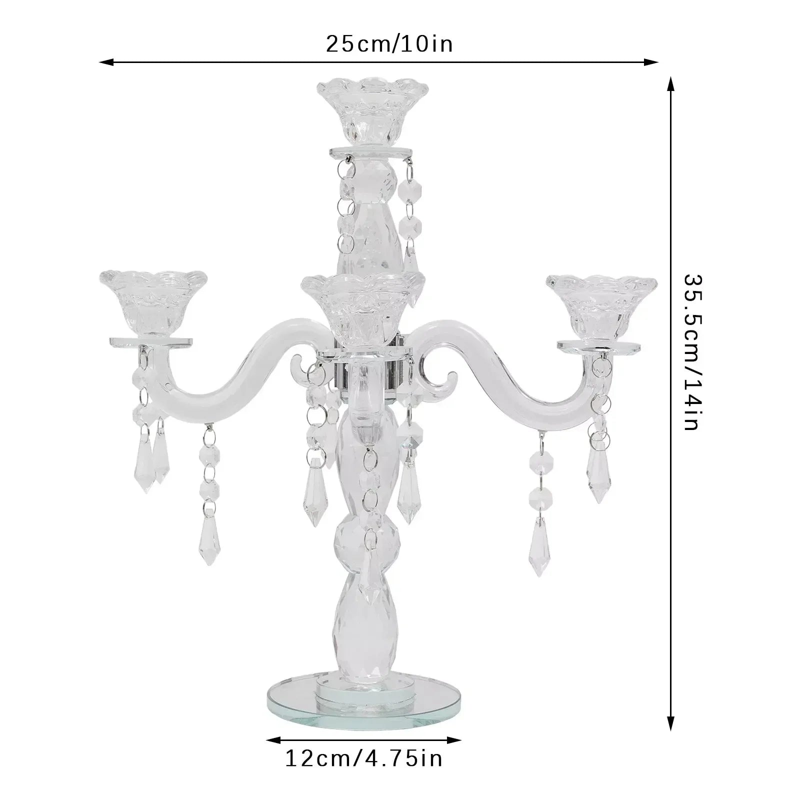 - Five-arm crystal centerpiece delivers a striking focal point for dining tables, buffets, or cabinets and accommodates taper or E-candles with diameters of 0.86–1.97 inches.