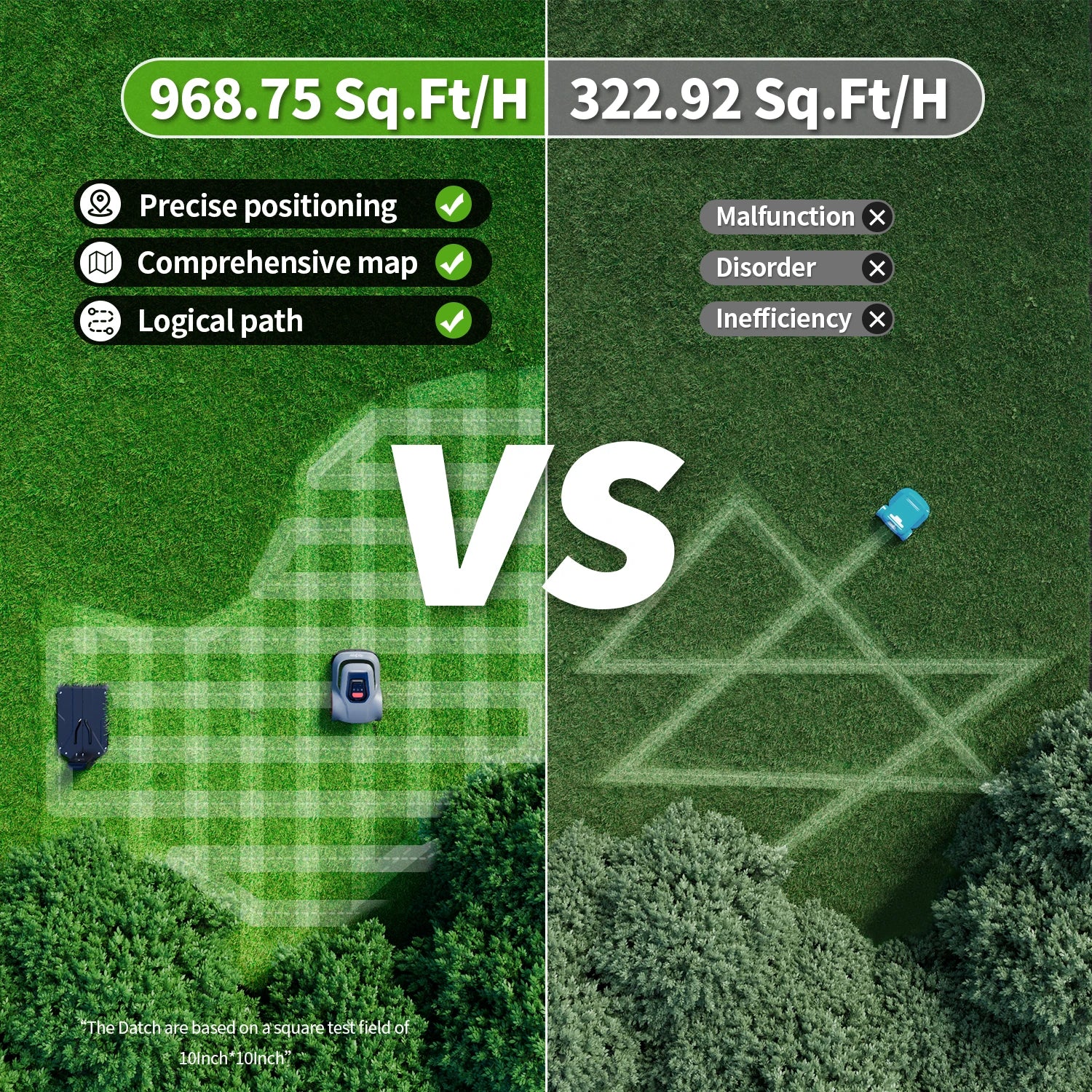 - Cable break detection and a wired boundary system provide reliable signals for edge-to-edge mowing, reducing missed spots to under 0.1%.