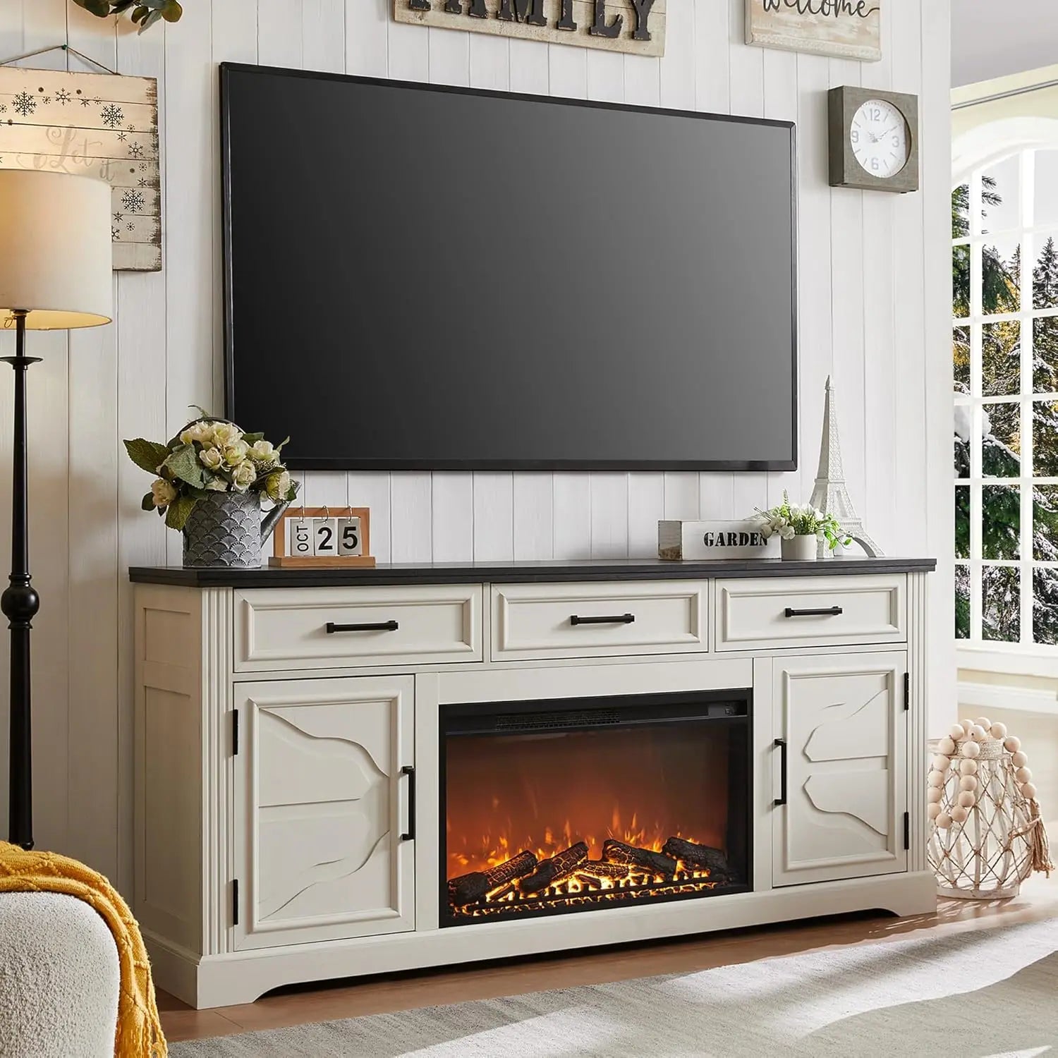 General Farmhouse TV Stand With Exquisitely MasterfullyCrafted Electric Fireplace Storage