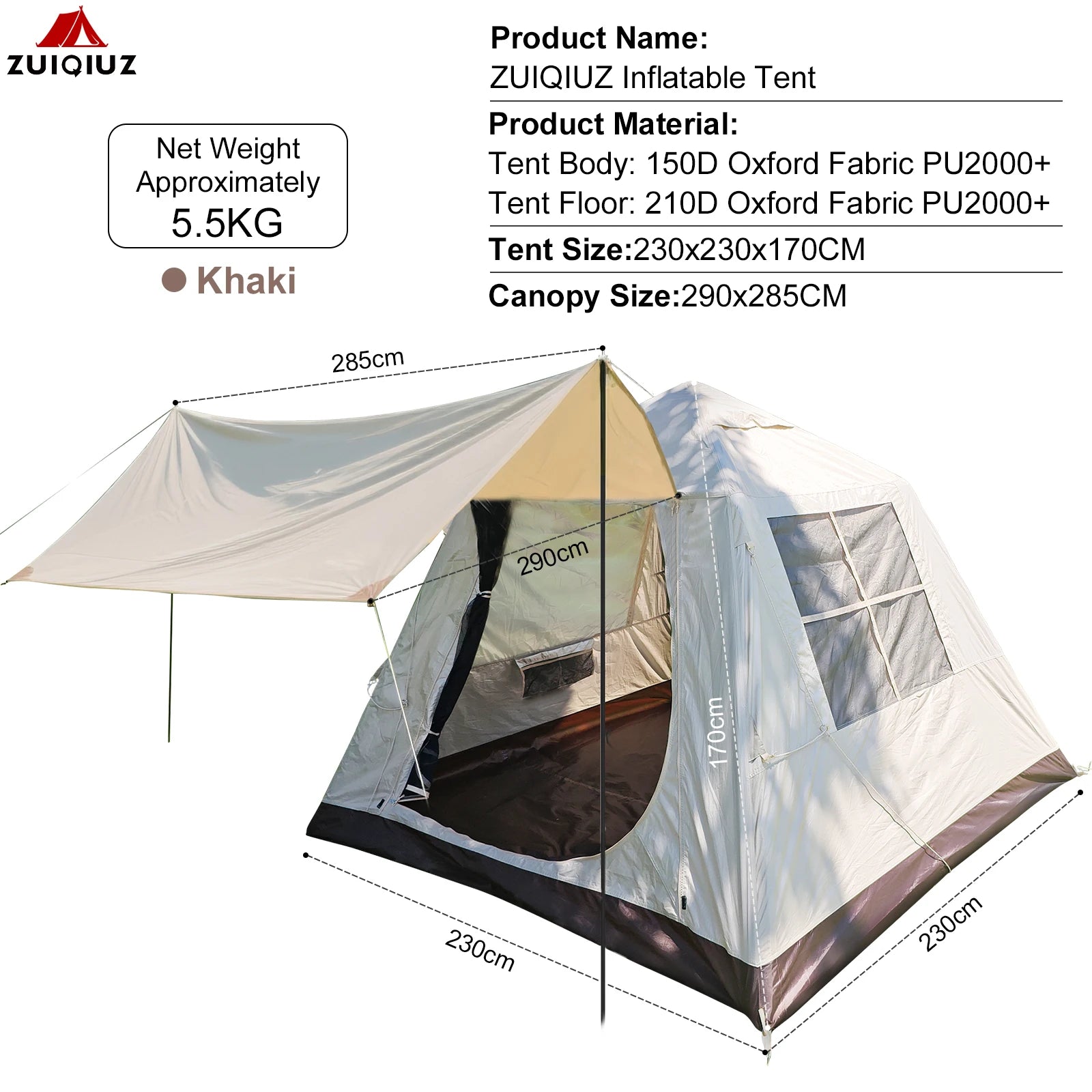 ZUIQIUZ Inflatable Camping Tent With Built In Air Pump For 3 To 4 People