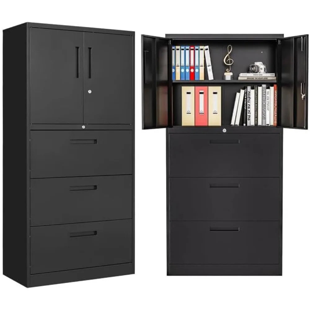 CommercialGrade Metal Lateral File Cabinet With 3 Drawers Lockable OfficeStorage