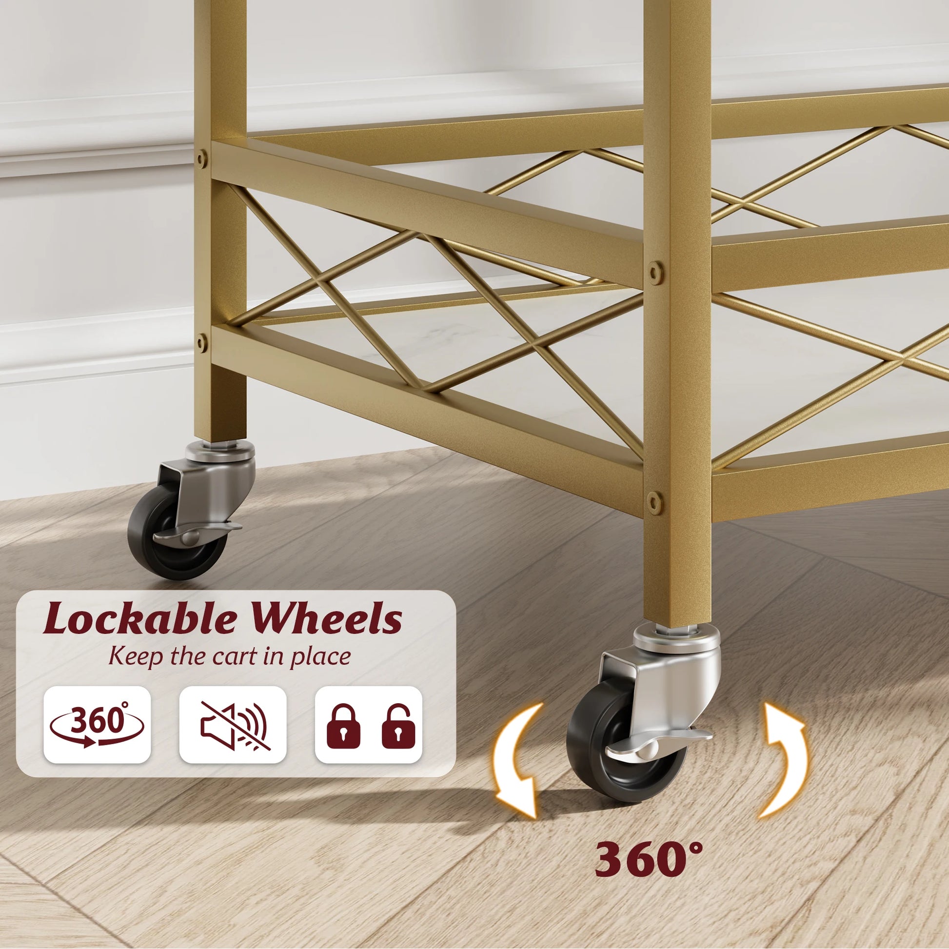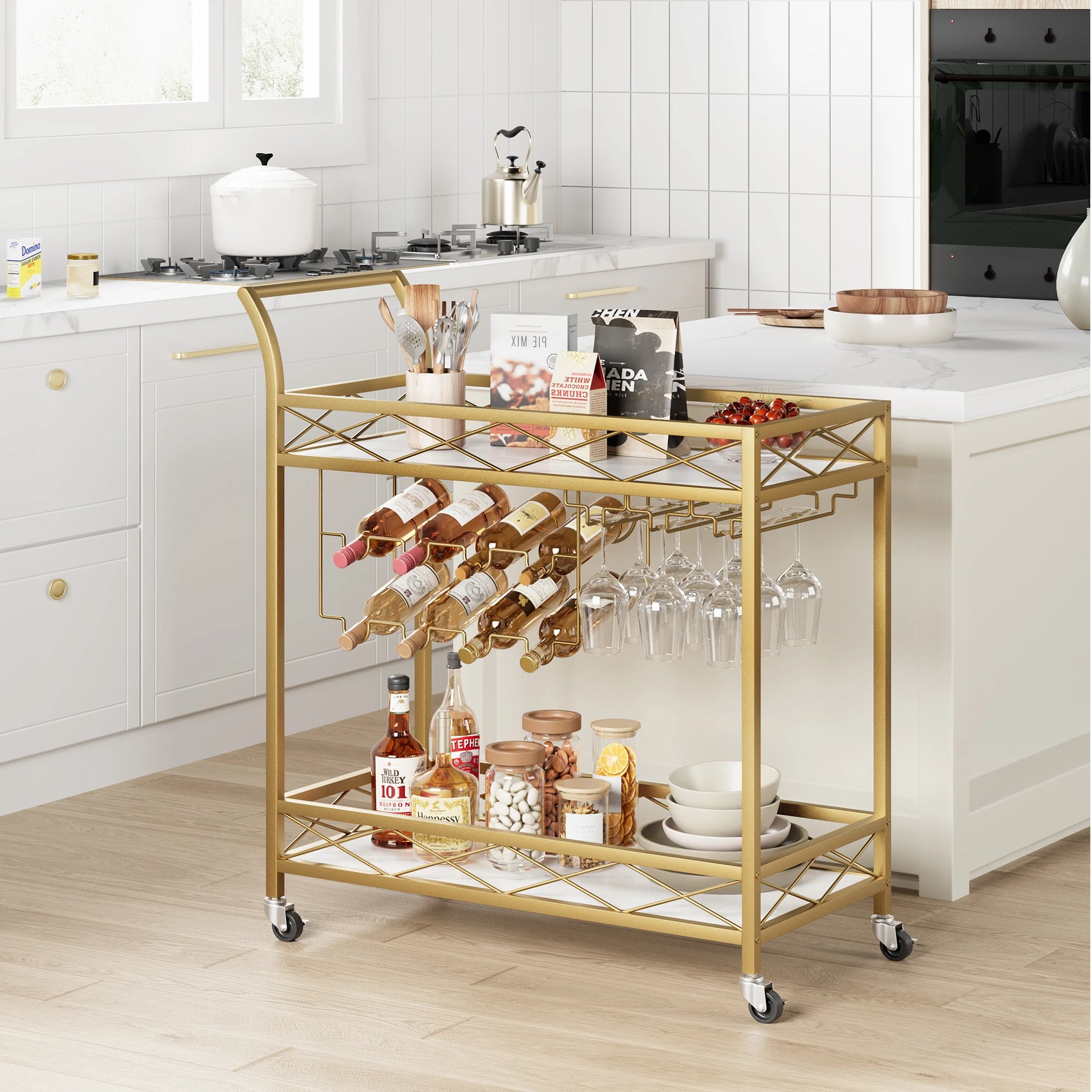 Hign-concerned Modern 2-Tier Rolling Bar Cart with Glass Holder