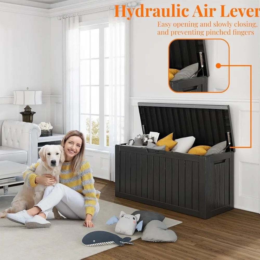 - Generous 80-gallon capacity keeps cushions, garden tools, and pool gear neatly organized, while doubling as a side table or seating.