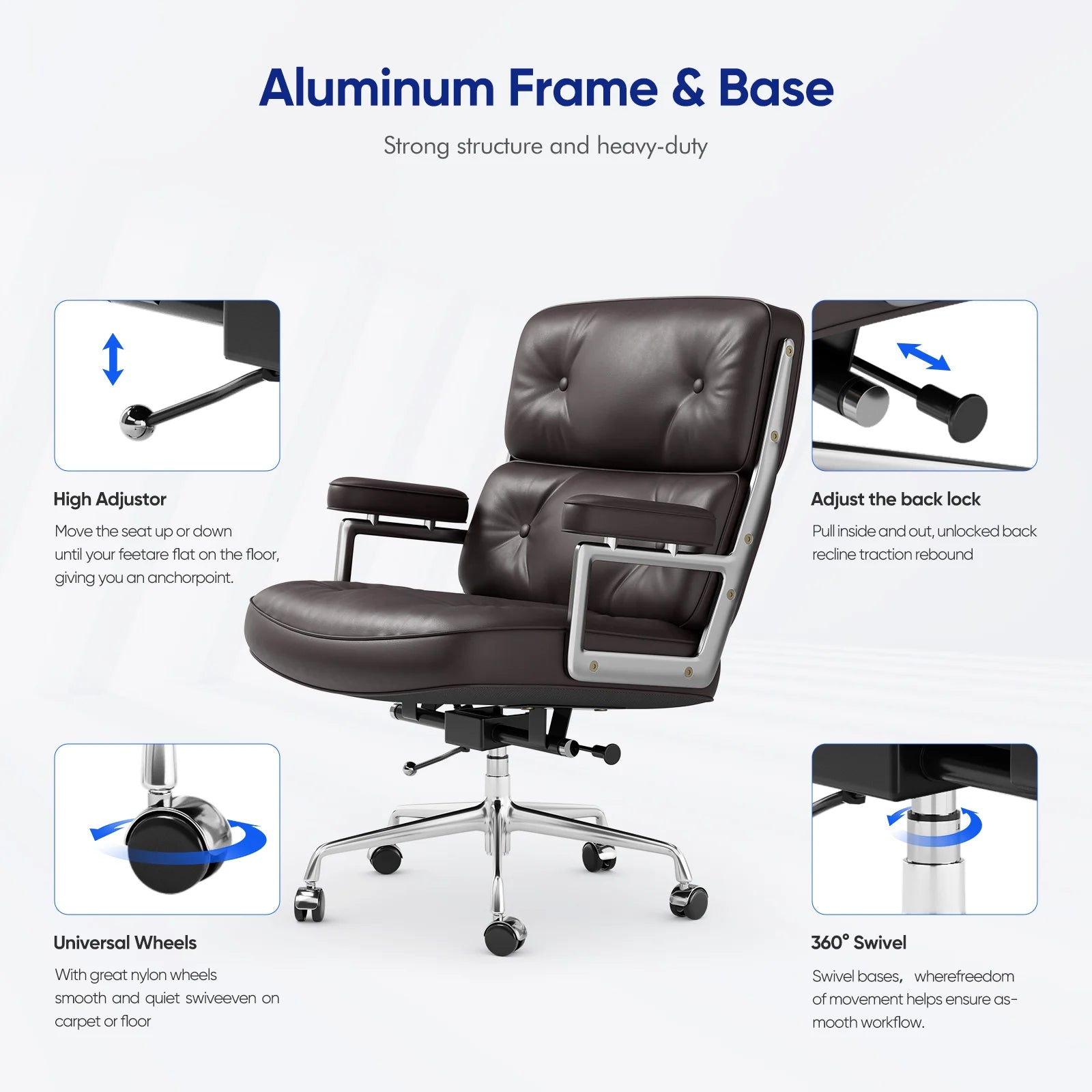 Furgle Ergonomic Genuine Leather Office Chair With Swivel Backrest
