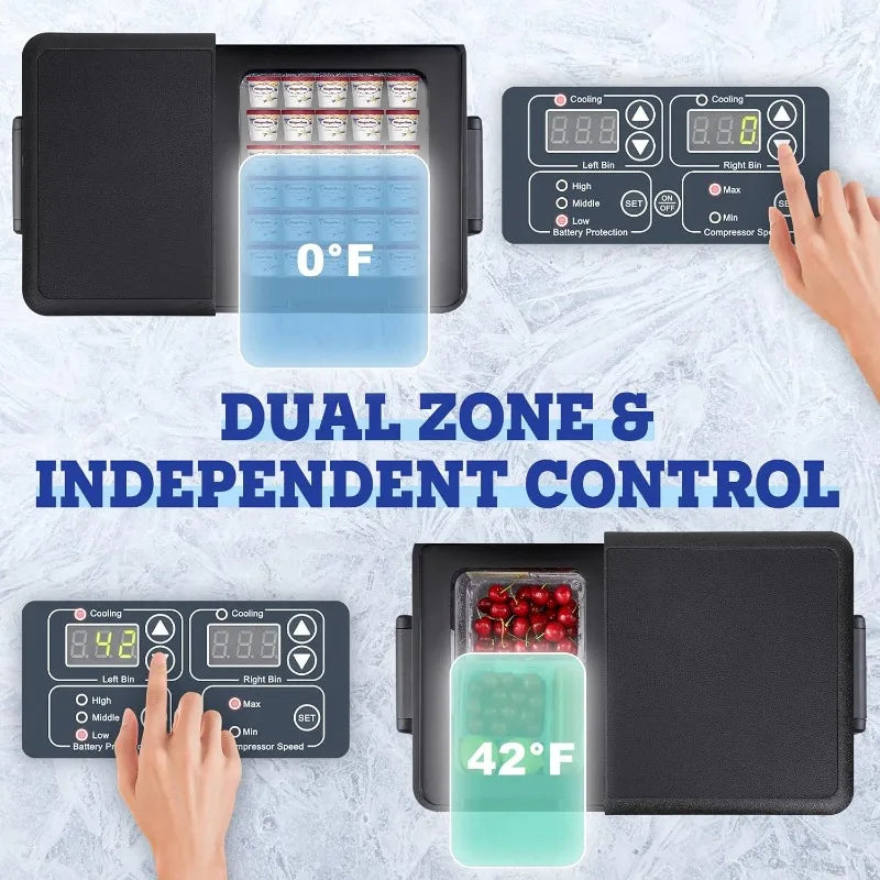 PT45 Electric Cooler Car Refrigerator Dual Zone Portable 12V Vehicle Fridge For Outdoor Travel